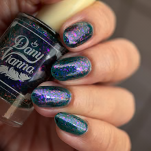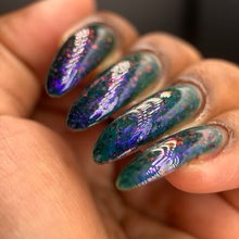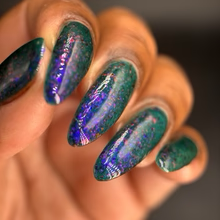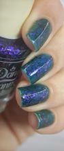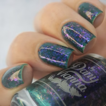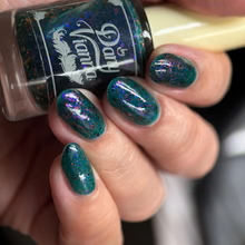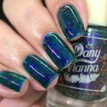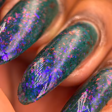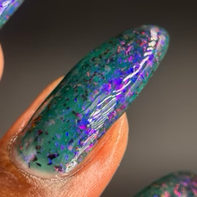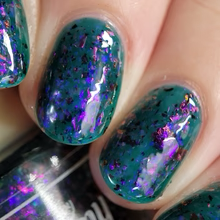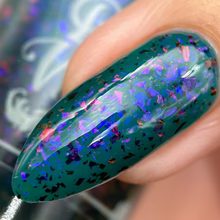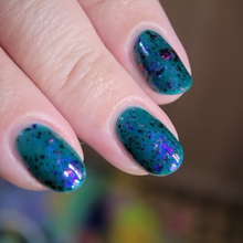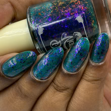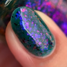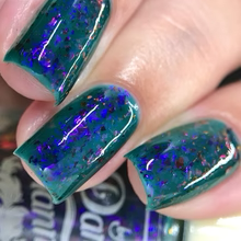 'Arsenic' is a teal jelly nail polish containing a mix of iridescent and UCC purple flakes.