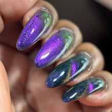 'Strychnine' is a teal jelly nail polish with purple magnetic effect.