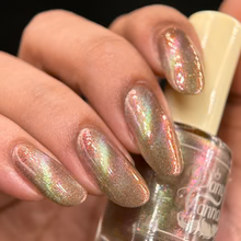 'Defying Gravity' is a green magnetic nail polish with pink aurora shimmer.