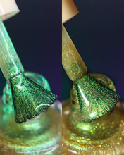 'Elphie' has green aurora shimmer and light green reflective glitter. It can be worn as a topper or on its own.