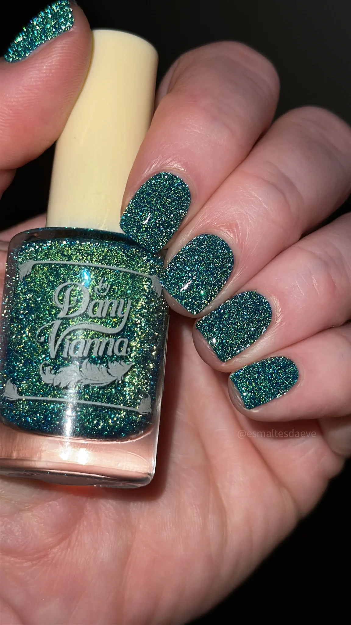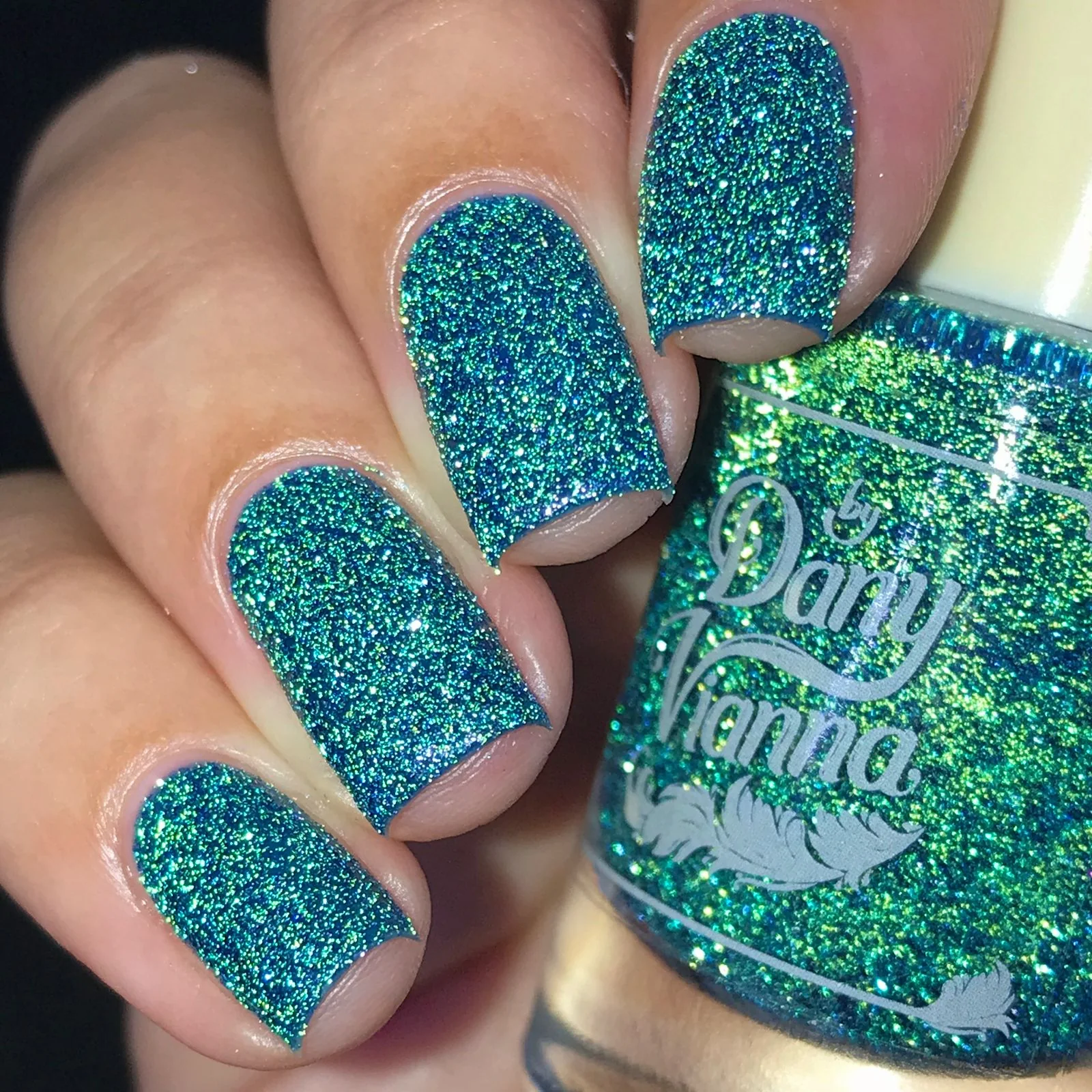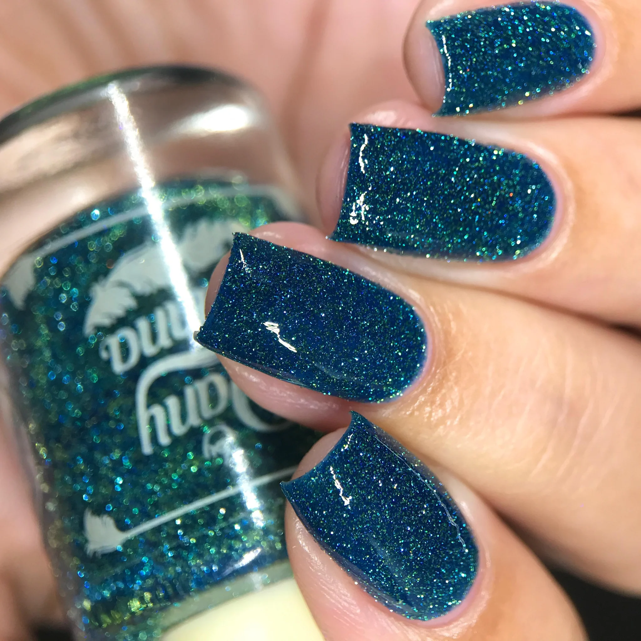 'As Long as You're Mine' is a blue jelly nail polish with green reflective glitters.