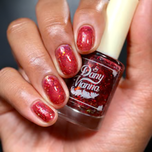 'Fire Opal' is a blood red sheer jelly nail polish with micro red holographic glitters and fiery iridescent flakes.