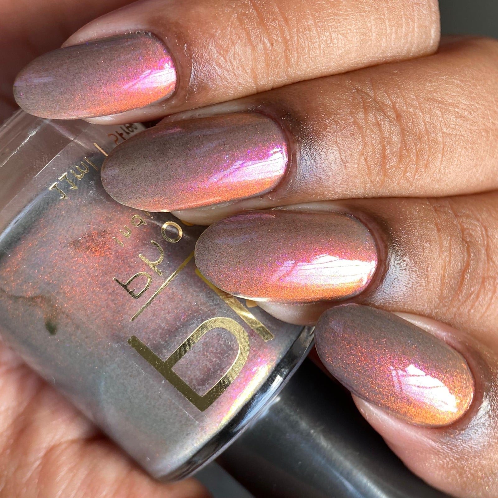 Lighthouse Golden Beam from the Precious Stones collection is a black with blue glitter and golden microshimmer, solid color. Magnetic finish. 11 ml bottle. 5-free.