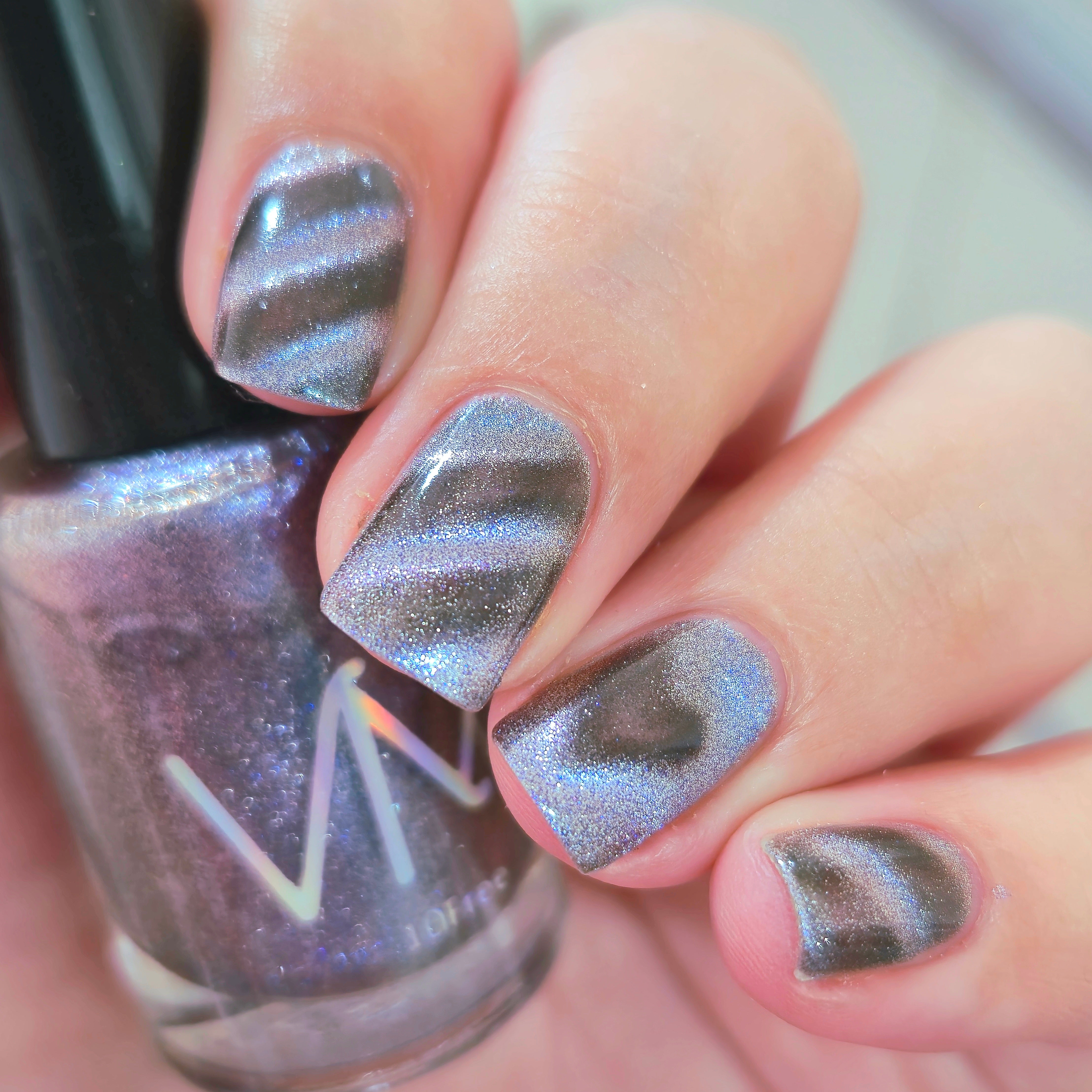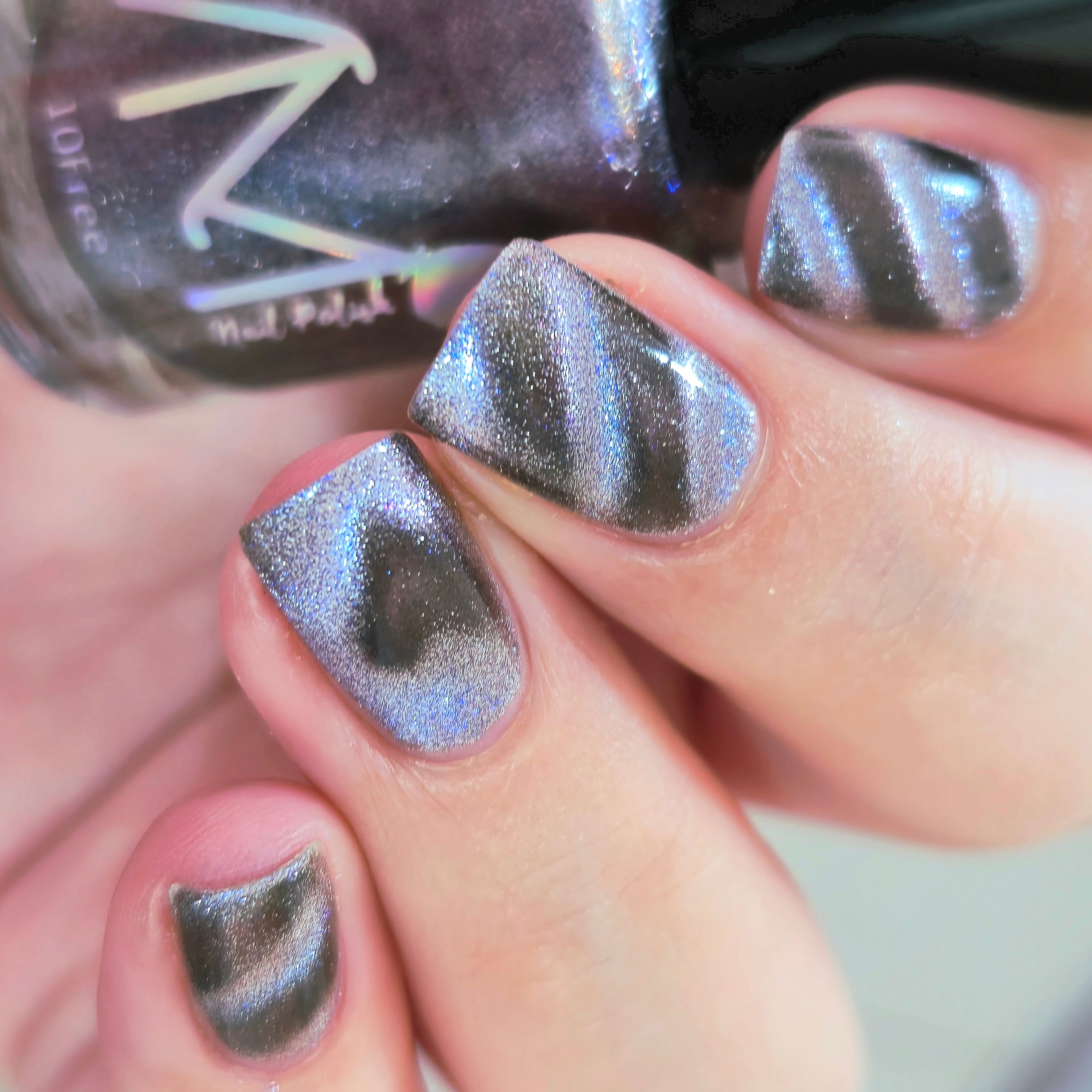 'Uraeus' is a magnetic nail polish with silver and blue hues.