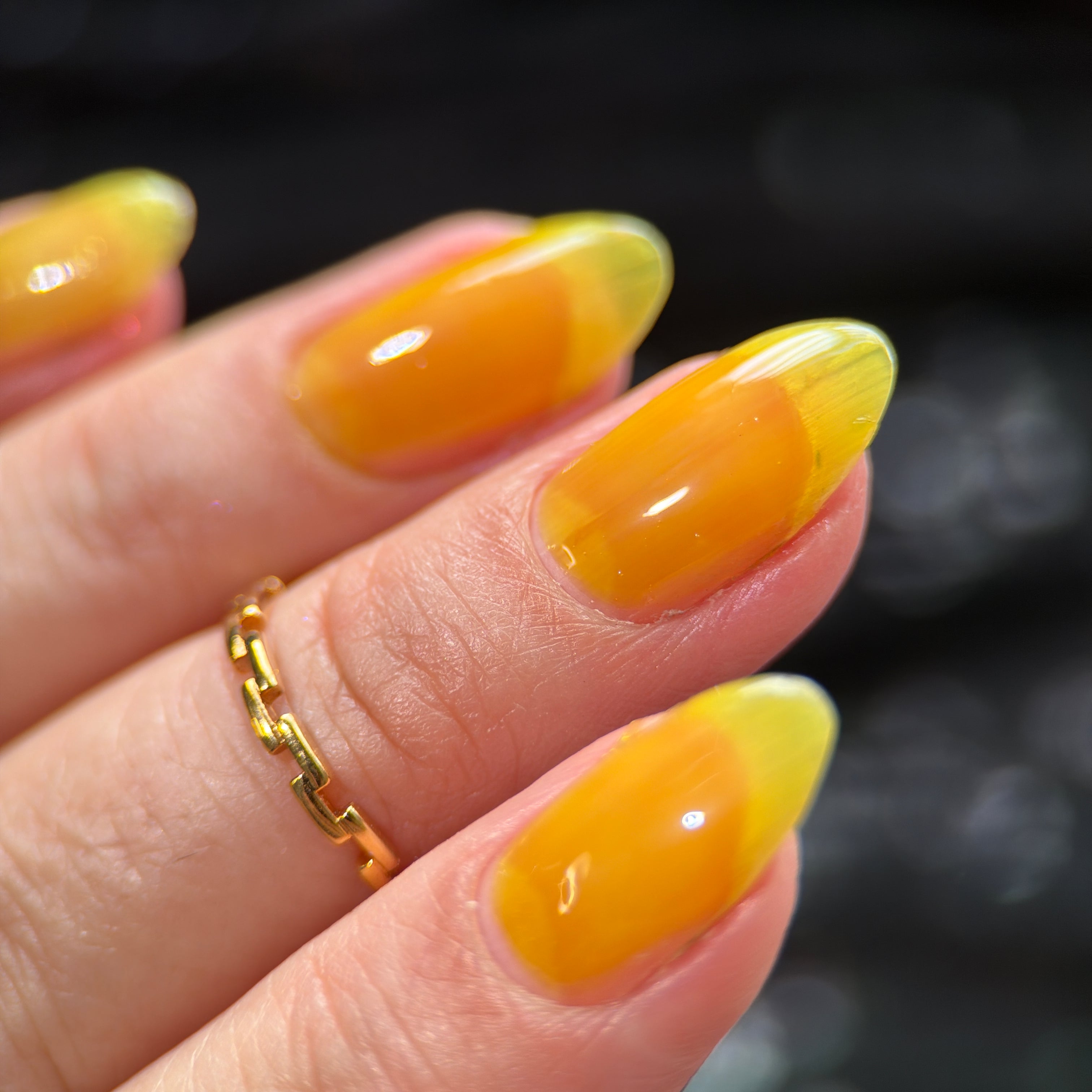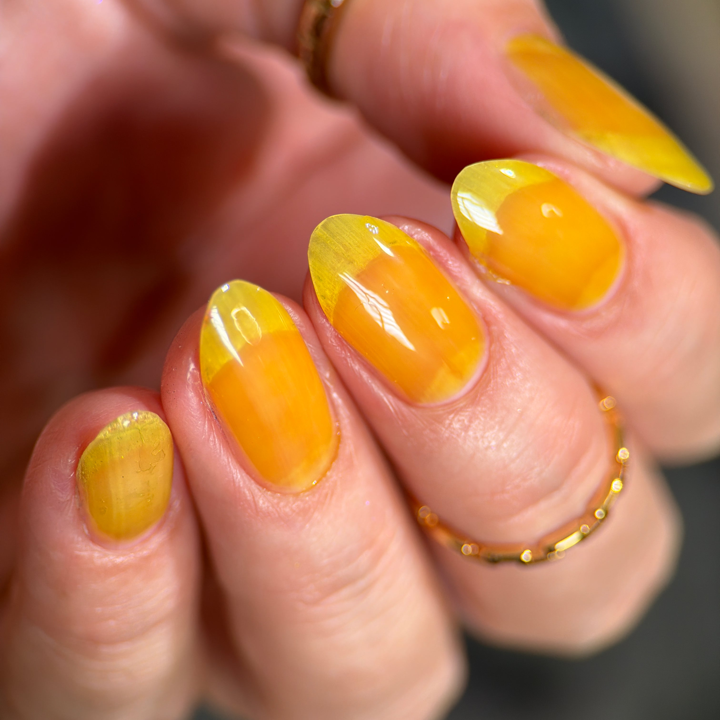 'Jelly Beam' is a yellow, sunbeam-colored, jelly nail polish.