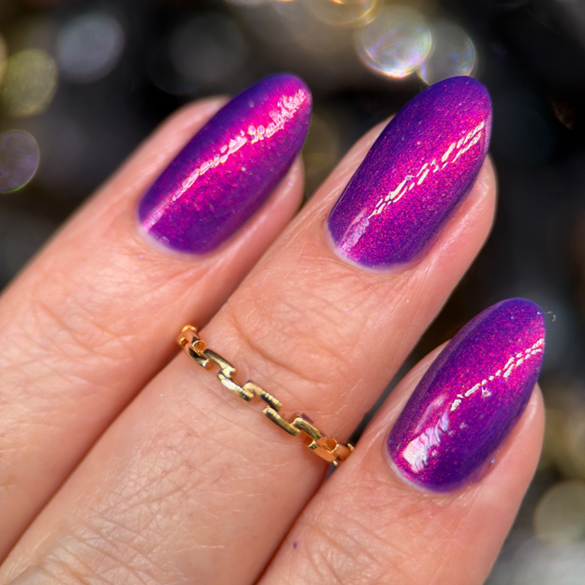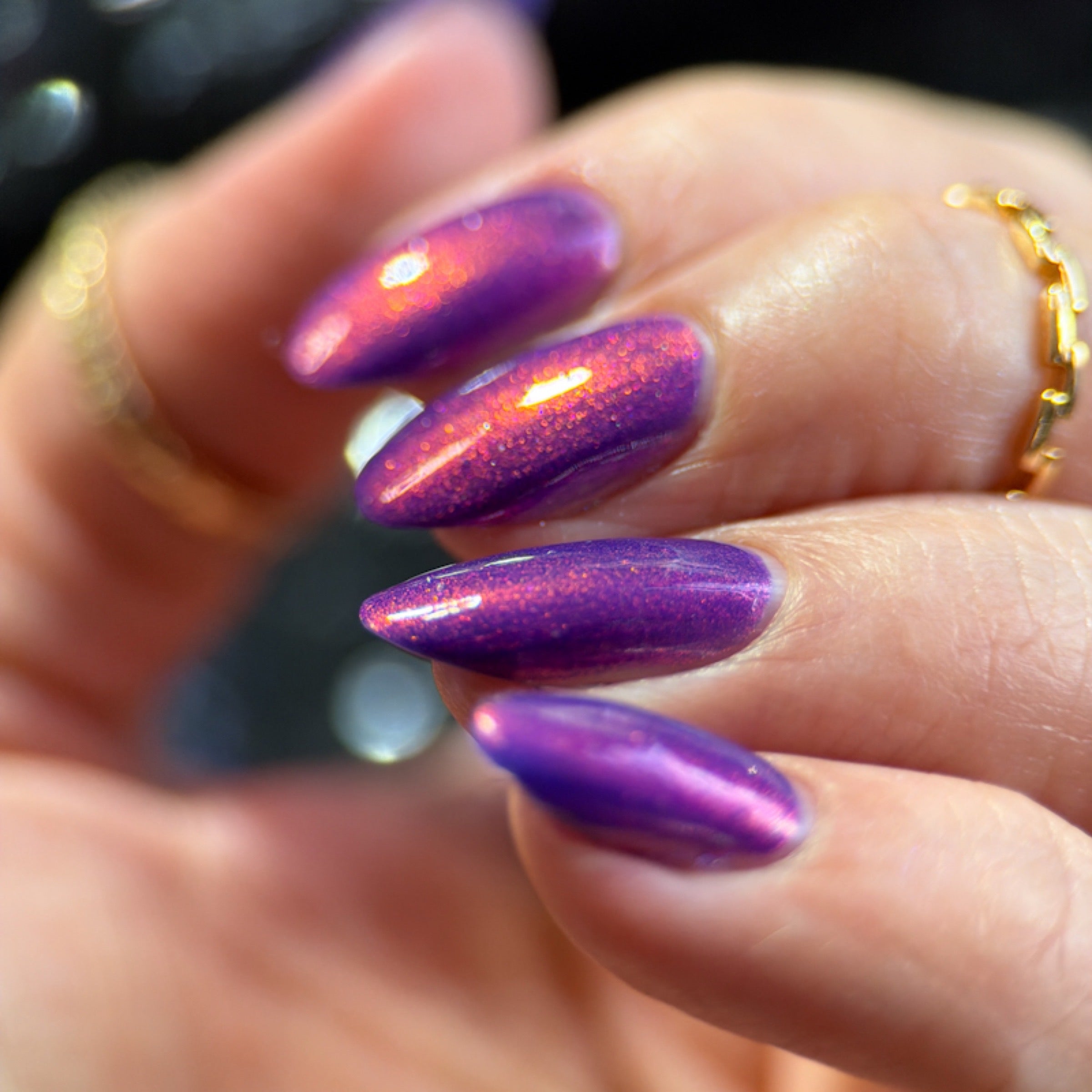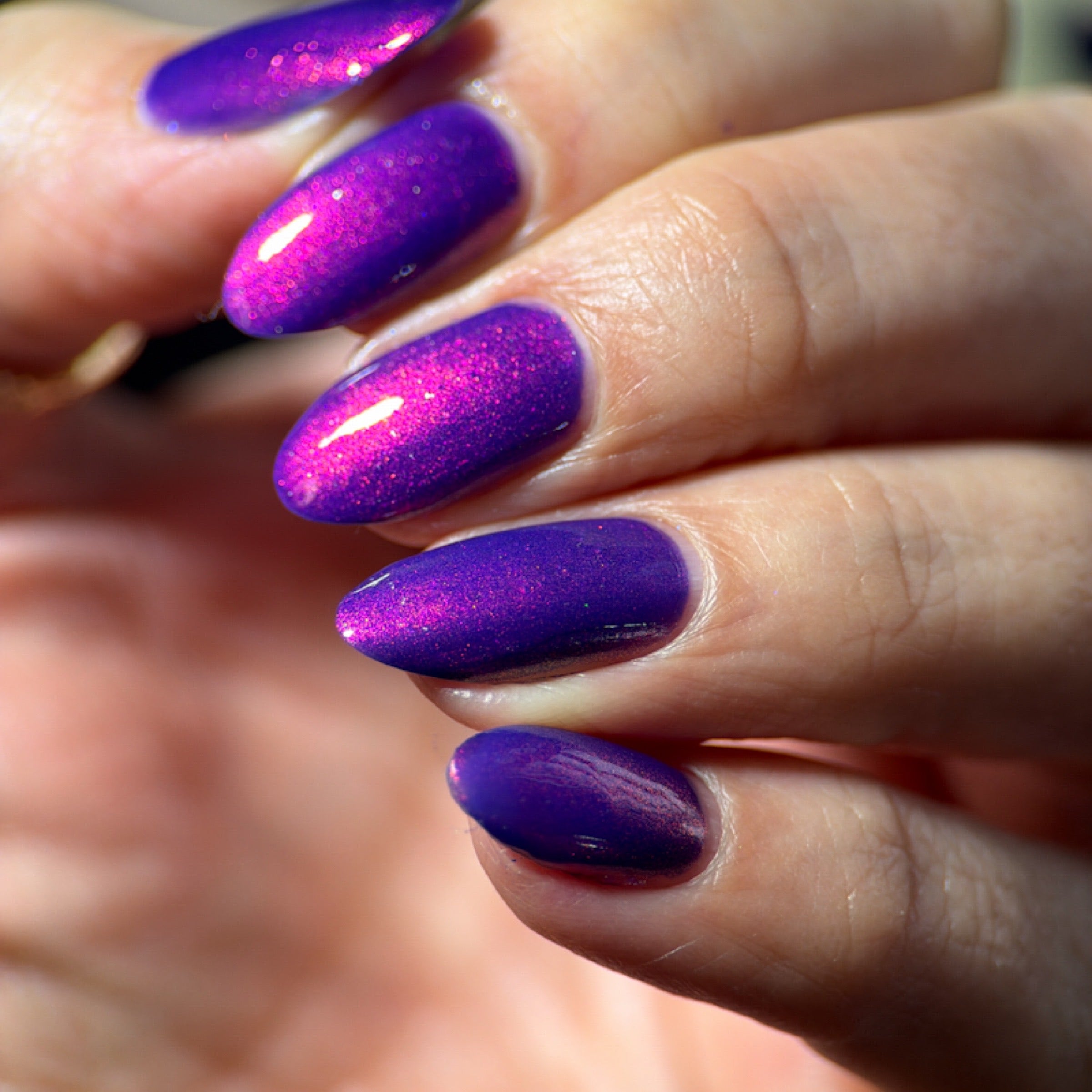 'Material Girl' is a purple nail polish with red aurora shimmer.