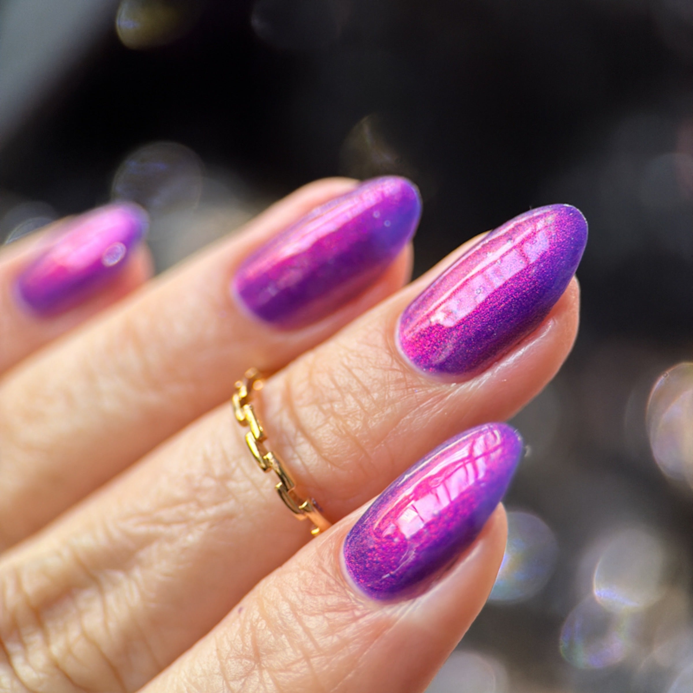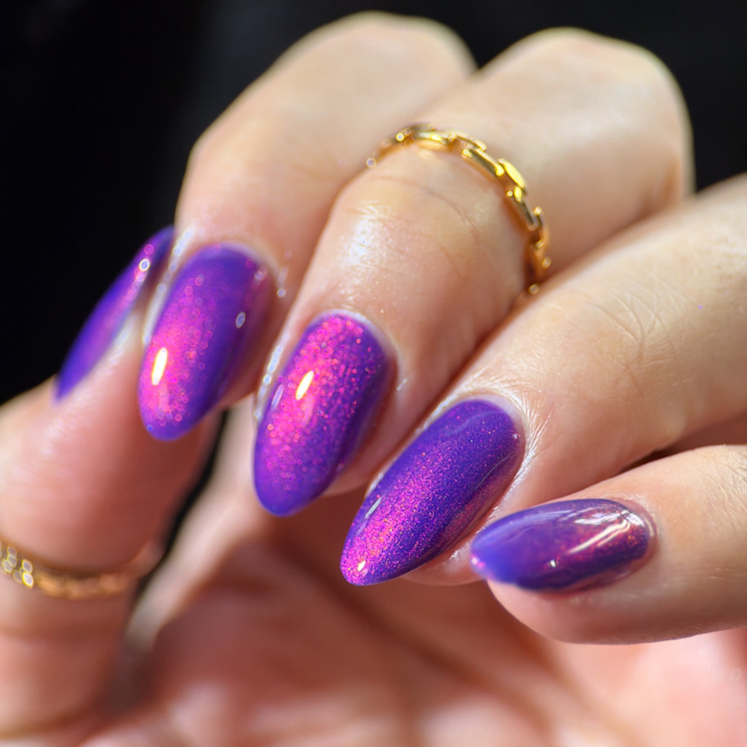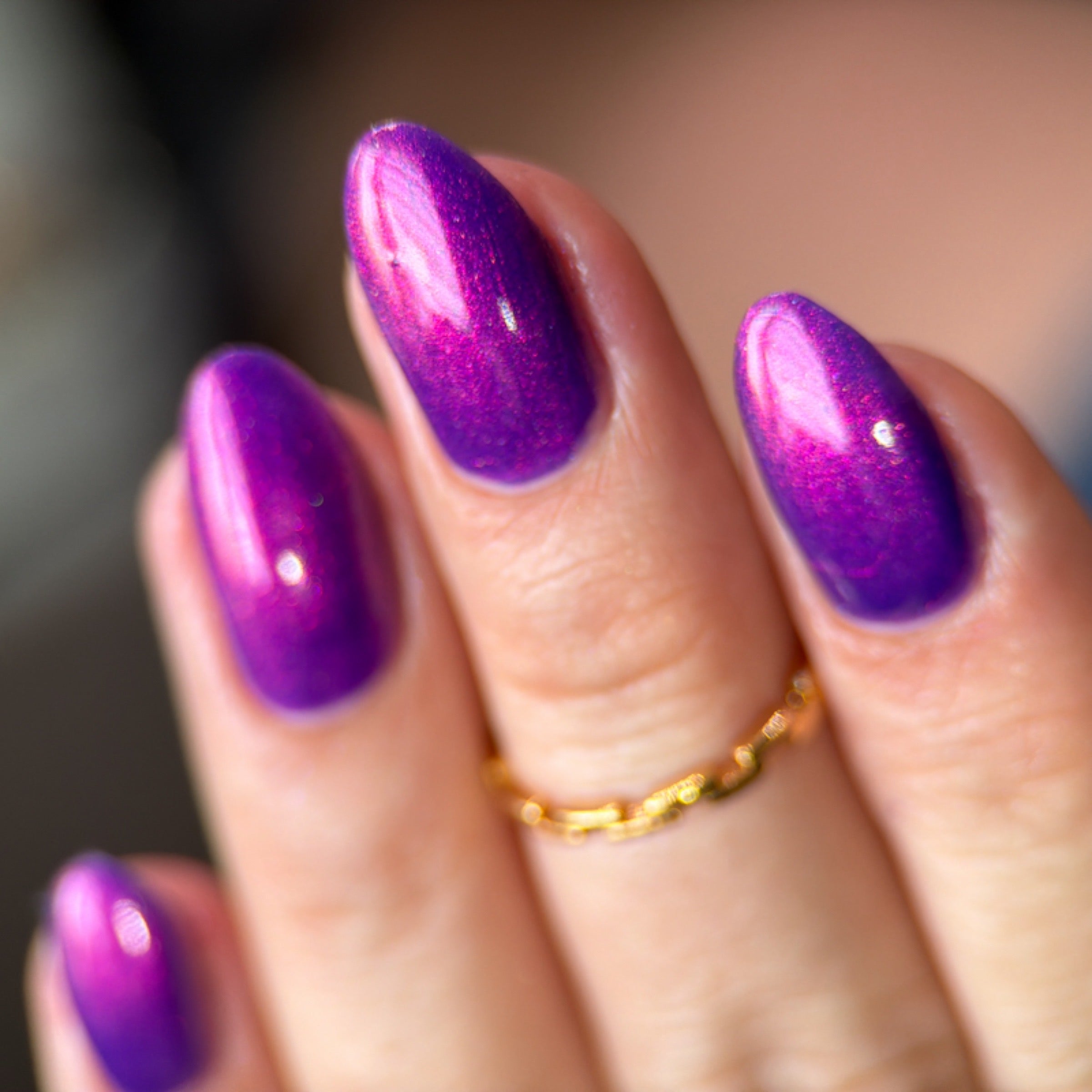 'Material Girl' is a purple nail polish with red aurora shimmer.