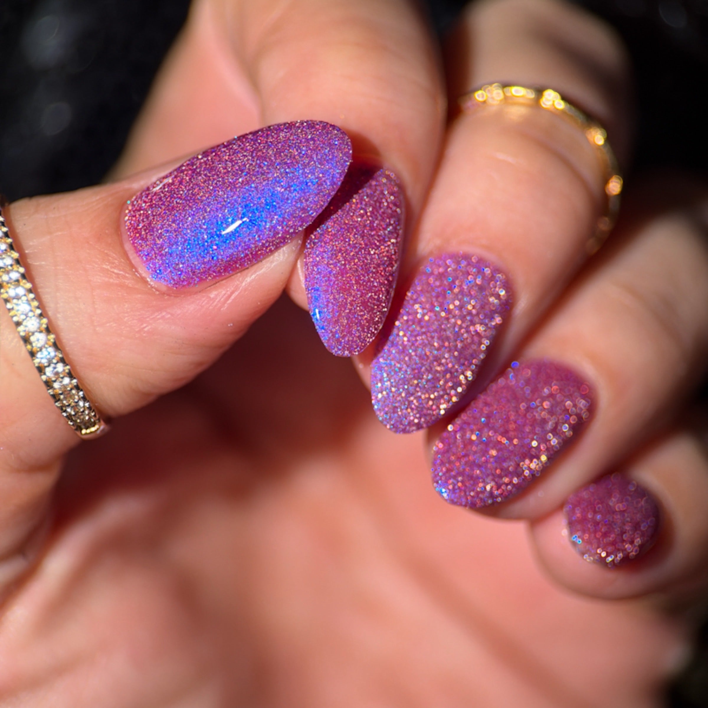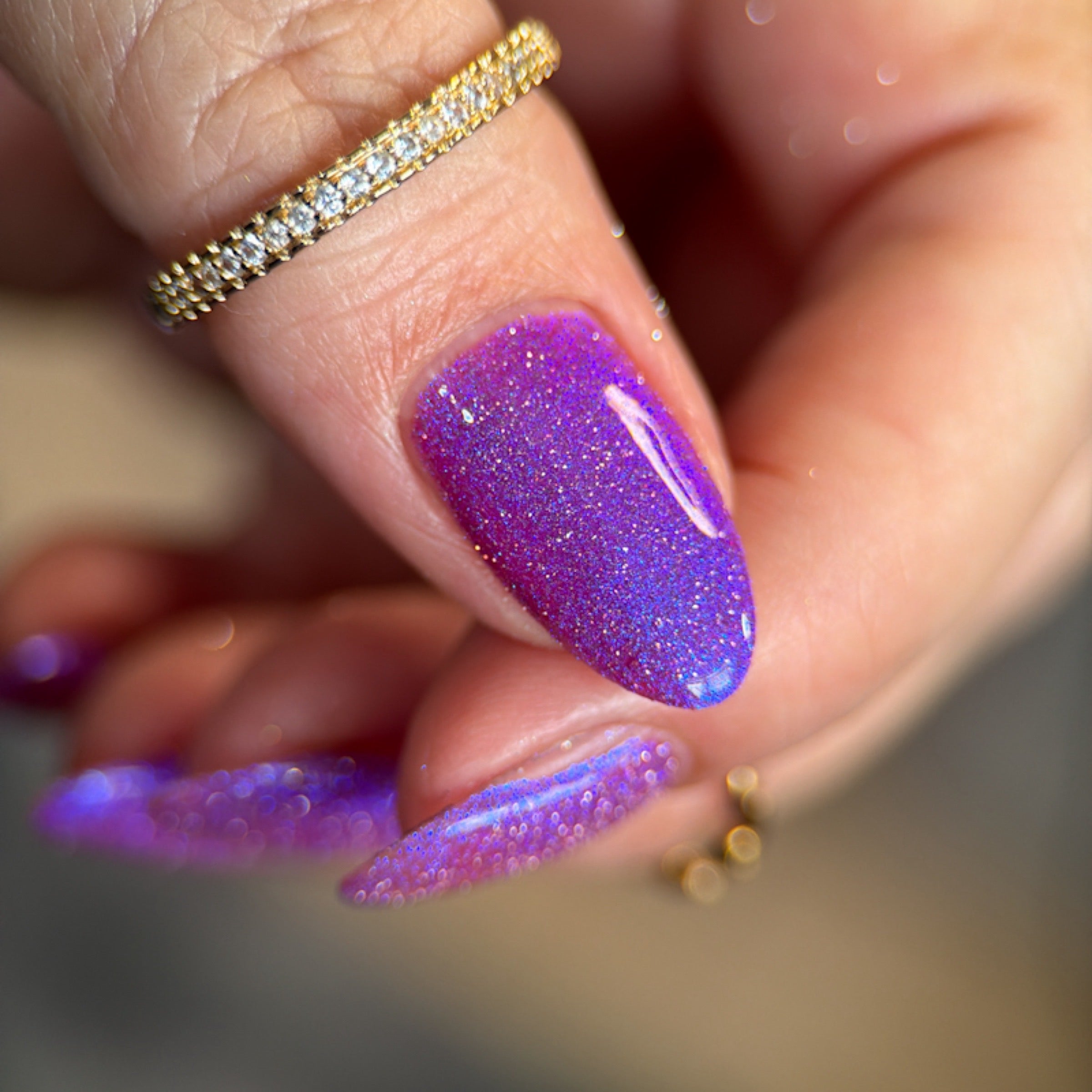 'Suzie, Do You Copy?' is a pink-purple nail polish with blue aurora shimmer and silver reflective.