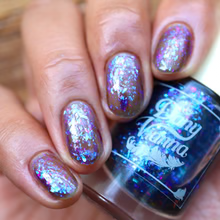'Black Opal' is a black sheer jelly polish with indigo to violet and purple to pink iridescent flakes.