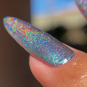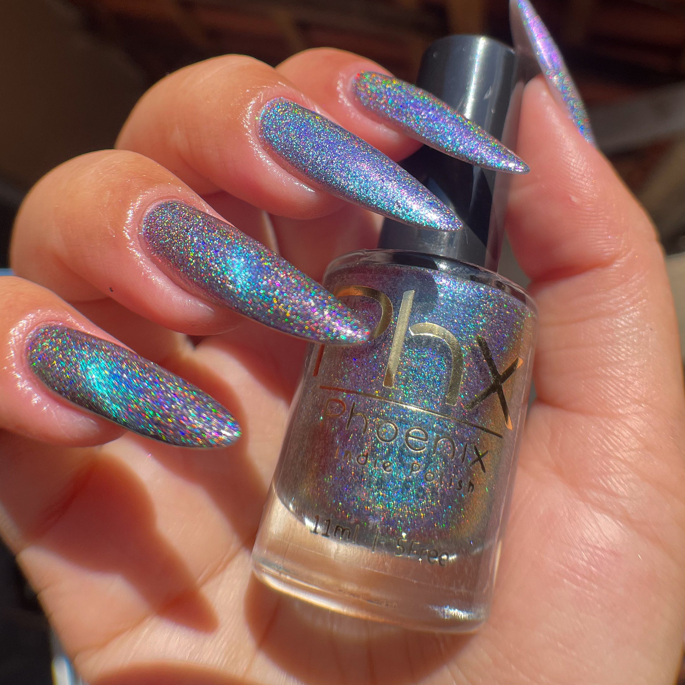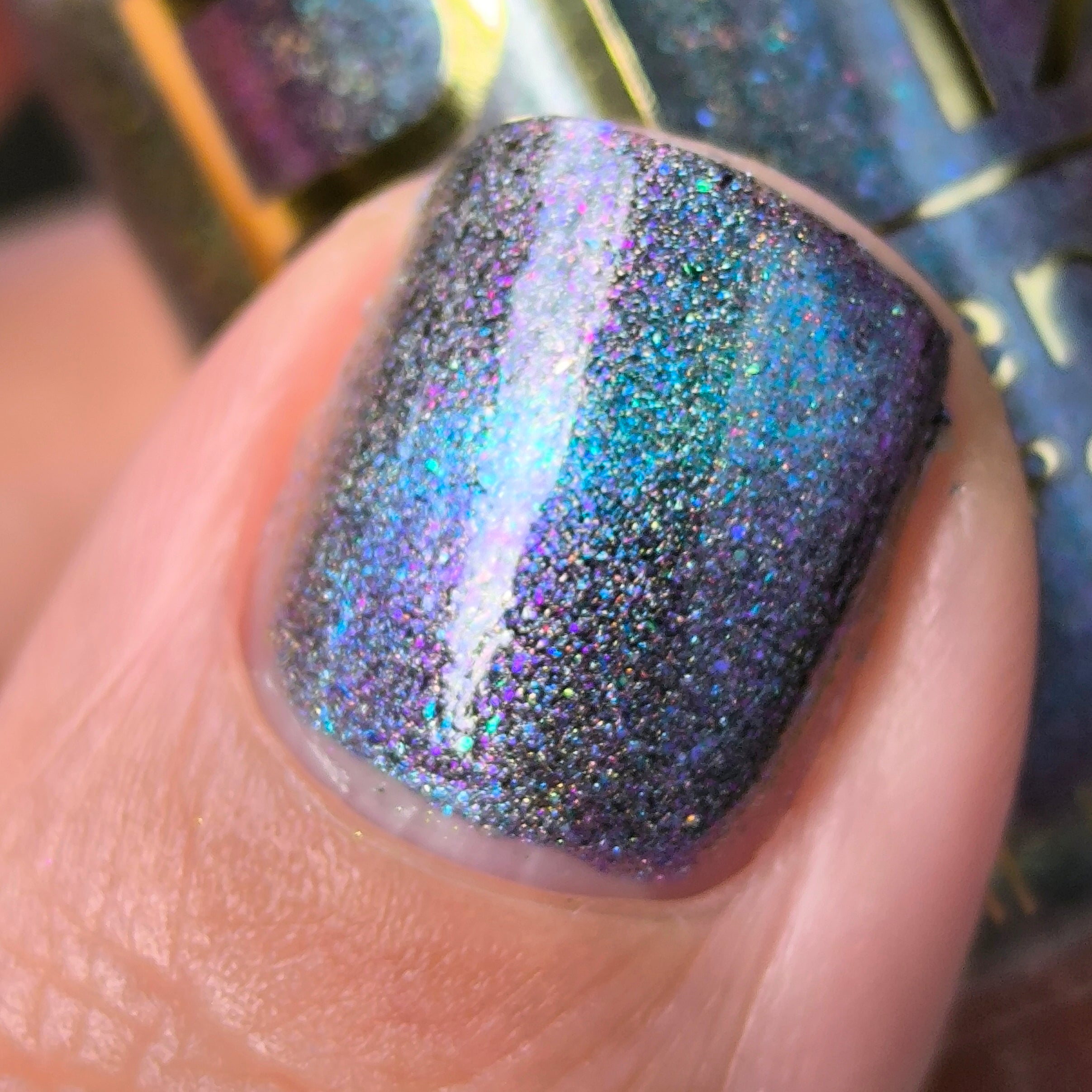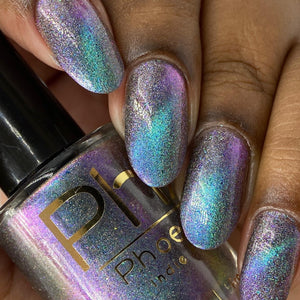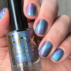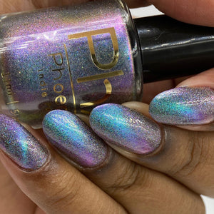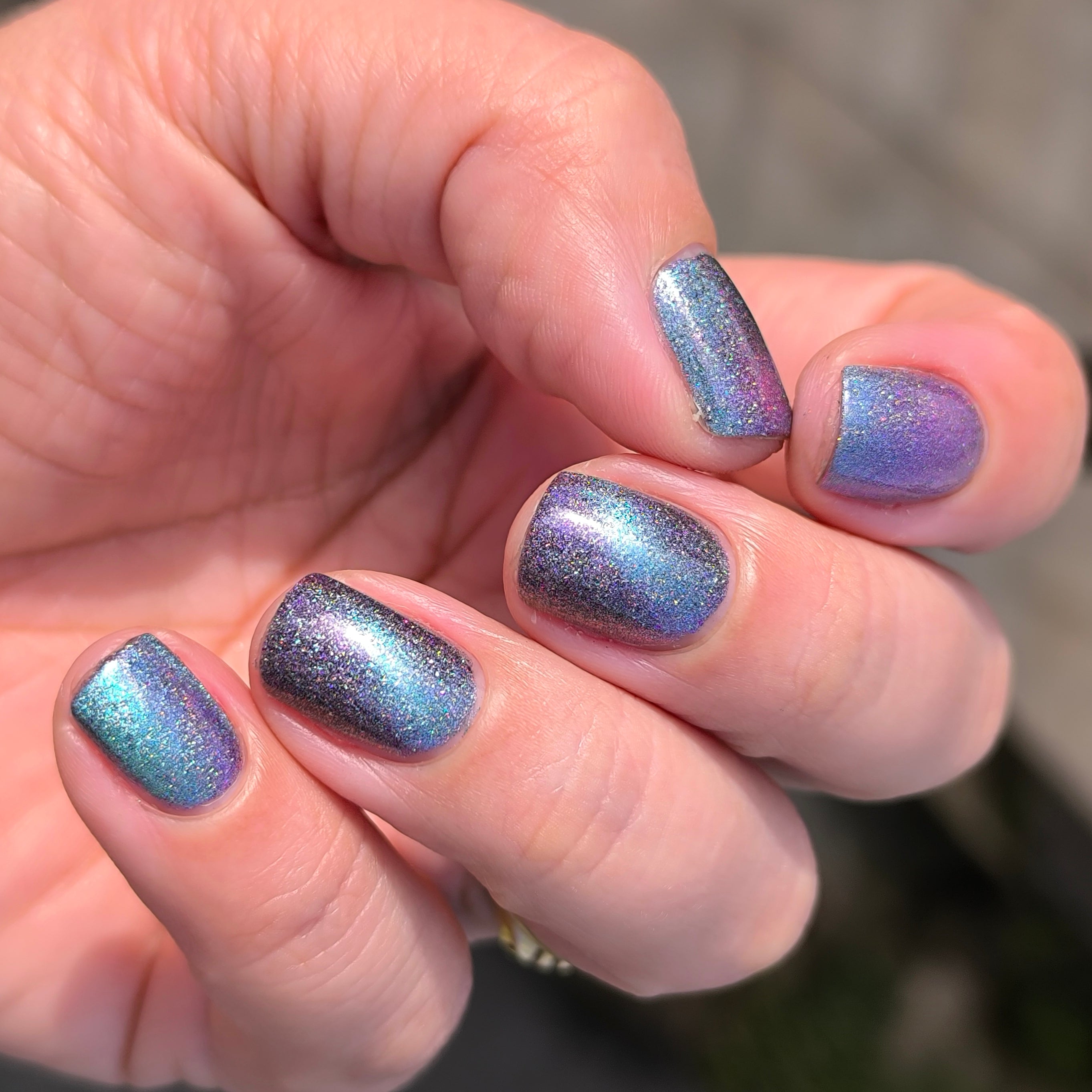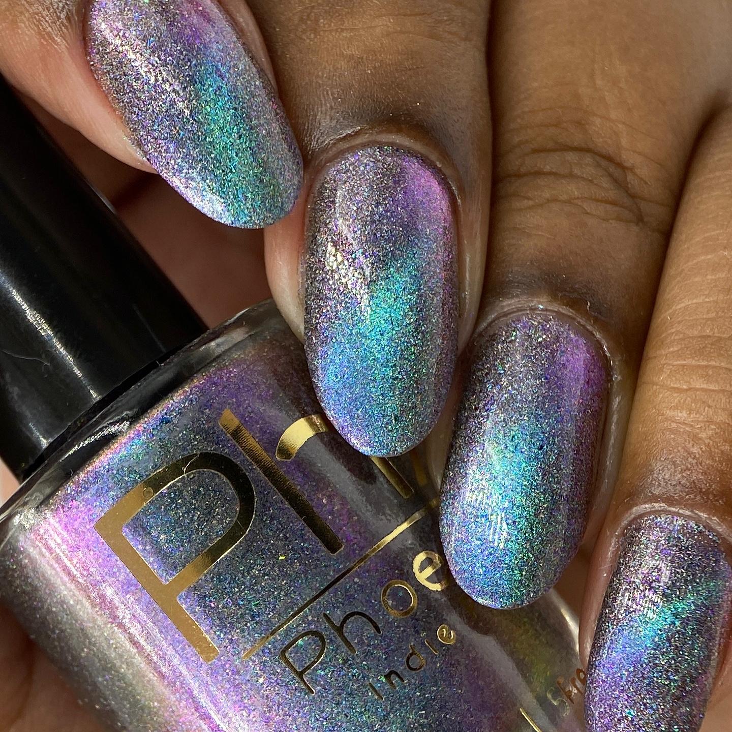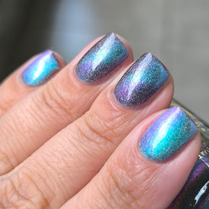 'Stay' is a pink/turquoise magnetic nail polish with holographic pigment.